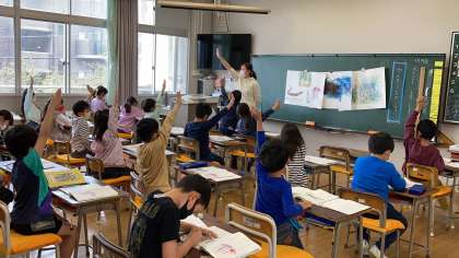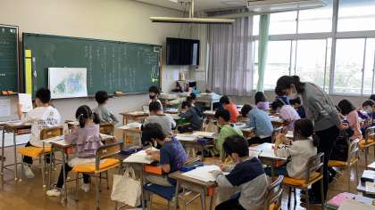 3時間目の2年生です。室内で落ち着いて学習をしています。