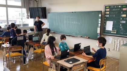 3時間目の3年生です。ノートパソコンを使った活動もスタートしました。