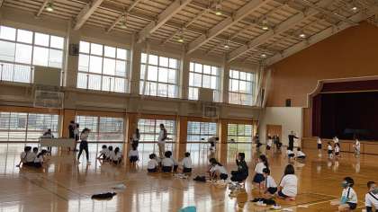 3時間目の体育館です。5年生が身体測定、視力検査をしています。