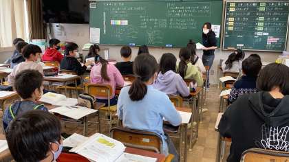 3時間目の5年1組、2組です。避難訓練の後の授業ですが、落ち着いて学習をしています。