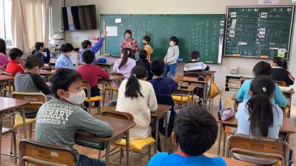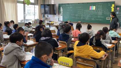 3時間目の5年3組、4組です。3組では話合い活動、4組では算数の授業がおこなわれています。
