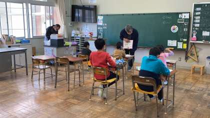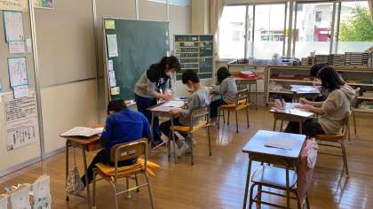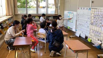 3時間目の仲よし1組、2組、3組です。先生の話をしっかりと聞くことができています。