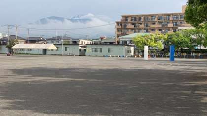 本日は、昨日までの雨がやみ、富士山も顔をのぞかせています。予定通り運動会を行います。現在の状況から、本年度、応援は子どもたちのみでの開催となりますが、2年ぶりの運動会ができることに感謝しています。