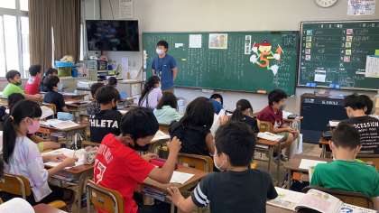 2時間目の5年生です。2組は図工の学習です。名画カードを使い、作品の鑑賞をしています。