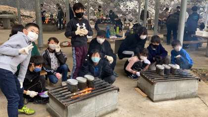 休憩の後は、火起こし体験です。意外に上手です。