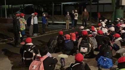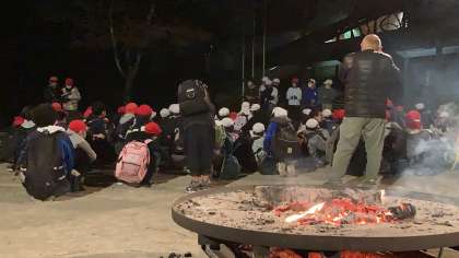 キャンプファイヤーの後は、退所式です。先ほどまで大きかった火が少しずつ小さくなる中、最後の式をしっかり行うことができました。