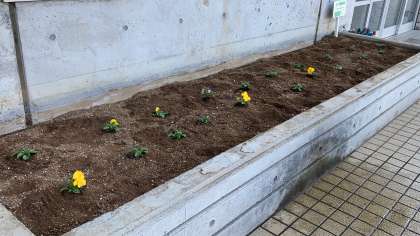 退職された先生方が育てられたパンジーやビオラを学校にいただきました。早速学校の花壇に植えました。花を咲かせる日が楽しみです。