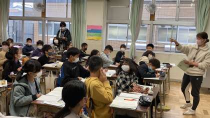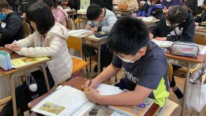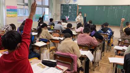 2時間目の4年2組です。国語「ごんぎつね」の学習です。登場人物の気持ちを考え、俳句や絵にまとめ、発表することができました。