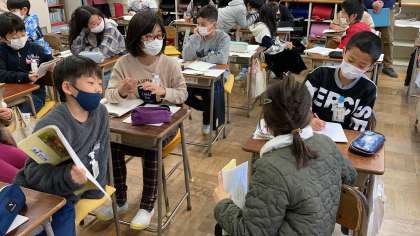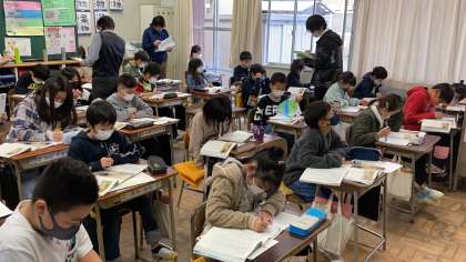 5時間目の4年1組です。国語の物語文「ごんぎつね」の学習です。最後の場面でのごんの気持ちを考え、日記にまとめていくことができました。