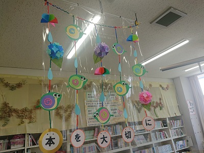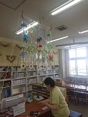 図書館ボランティアの皆様が学校図書館の整備を行ってくださっています。カウンターに季節感のある飾りつけをしていただきました。誠にありがとうございました。