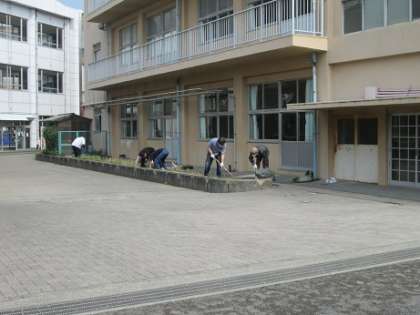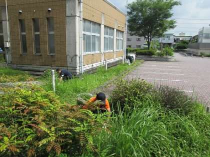 グラウンドの樹木剪定・除草・落ち葉集めを男性保護者に行っていただきました。みるみるうちに綺麗になりました。