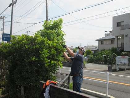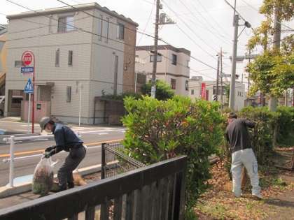 グラウンドの樹木剪定・除草・落ち葉集めを男性保護者に行っていただきました。グラウンド東側道路沿いや放課後児童クラブ前も見違えるよう整備されました。