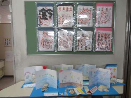 3年生の廊下です。図工や書写の作品が展示されています。どの作品も上手です。