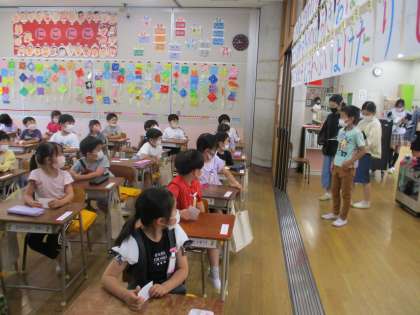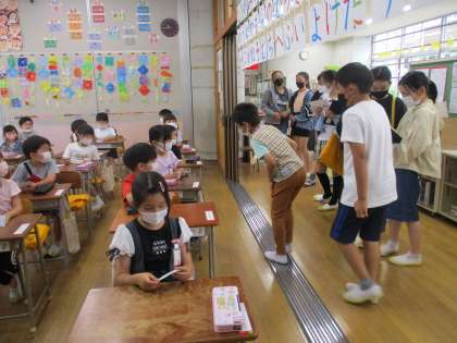 ペア活動が始まりました。6年生は、1年生の教室にペアの友達を迎えにいきます。(どの子が自分のペアだろう。)6年生も緊張しながらペアの1年生を探しています。