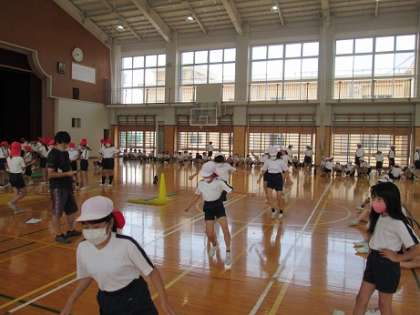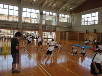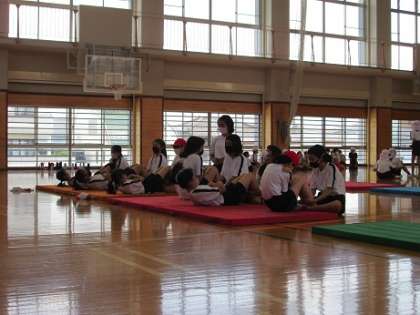 5・6年生は新体力テストを実施しました。反復横跳びと上体起こしの様子です。みんな頑張っています。