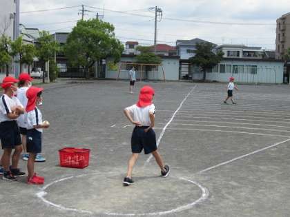 ソフトボール投げの様子です。遠くに飛ばすことができたかな。