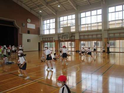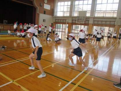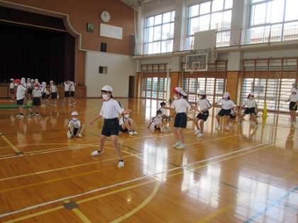 反復横跳びの様子です。上手にステップしながら、リズムよく跳んでいます。