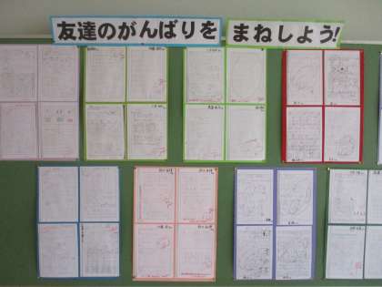 6年生の学年掲示板です。友達のよいところを認め、みんなでがんばっていくぞという気持ちが伝わってきます。