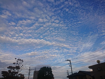 10月も折り返し、今週がスタートしました。空を見上げると秋雲と少し厚い雲を見ることができました。今日も元気にがんばりましょう。