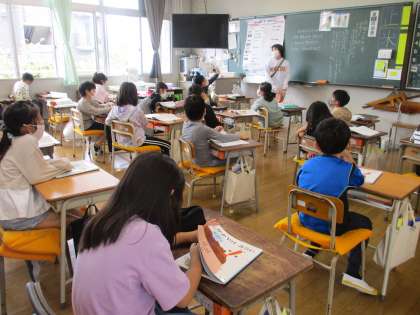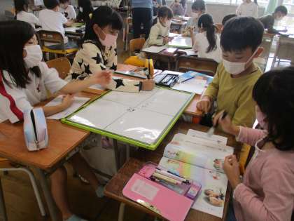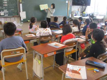 3時間目の2年生です。学年で道徳の学習を同じ時間におこなっています。