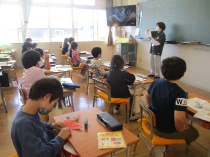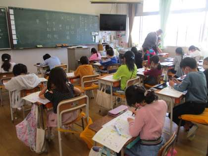 2年生です。4組は、硬筆の学習です。よい姿勢で学習に参加しています。