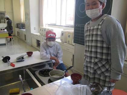 6年生の学習の様子です。家庭科でみそ汁の調理実習を行いました。どの班も煮干しだしから作るみそ汁作りにチャレンジしました。