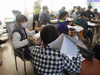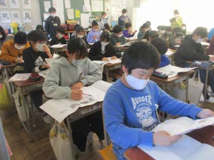 2時間目の6年2組です。国語「意見文を書こう」の学習です。「本物の森で未来を守る」を読み取ることを通し、自分の考えを深めていくことができました。