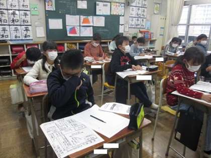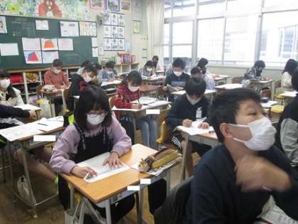 5年生の学習の様子です。社会科見学の振り返りとして、見学新聞作りを行うクラスもありました。