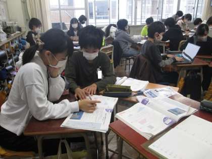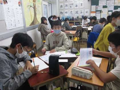 6年生の学習の様子です。国語では説明文について、グループで学習しながら理解を深めました。