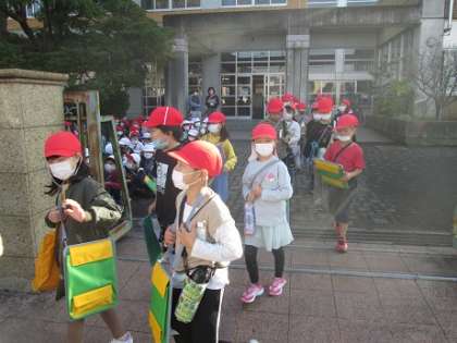2年生が町たんけんに出かけました。実際に金岡小学校区内を歩き、町の様子はどんなかを見学しました。
