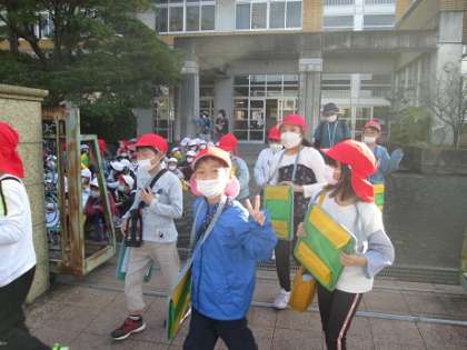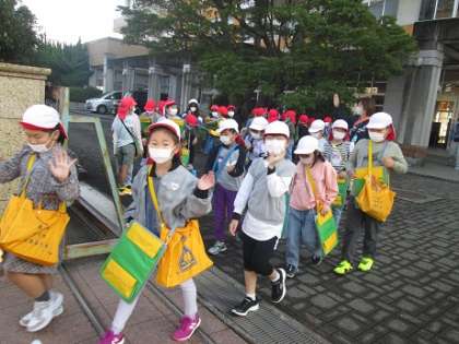 2年生が町たんけんに出かけました。実際に金岡小学校区内を歩き、町の様子はどんなかを見学しました。