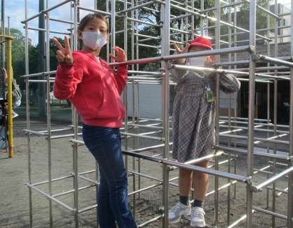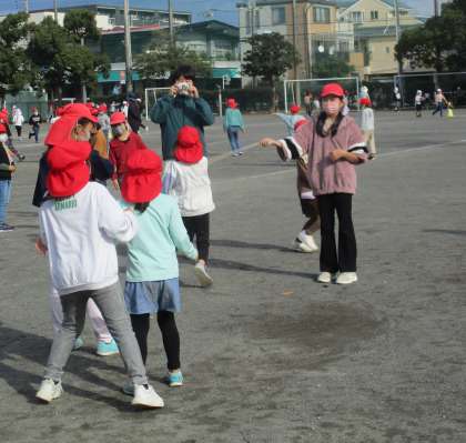 「(鬼ごっこをして)4年生から逃げ切れて嬉しかった〜」とお兄さんお姉さんとの交流を楽しんでいました。