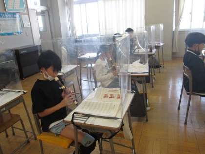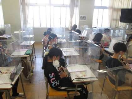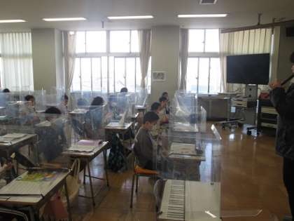 4年生の学習の様子です。音楽では「オーラリー」という教材を学習しています。みんなでリコーダー演奏を行っていました。