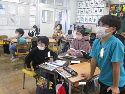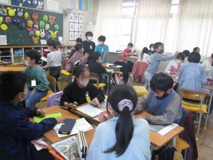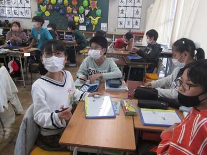 4年生の学習の様子です。国語ではグループ対抗で、竹かんむりの付く漢字さがしを行っていました。