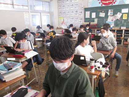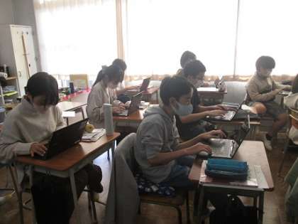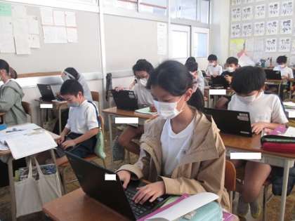 6年生の学習の様子です。道徳の時間には、「放置自転車」という資料を使って、「きまりと社会」について、多面的多角的な考えを紹介しあいました。クロームブックに自分の考えをまとめていました。