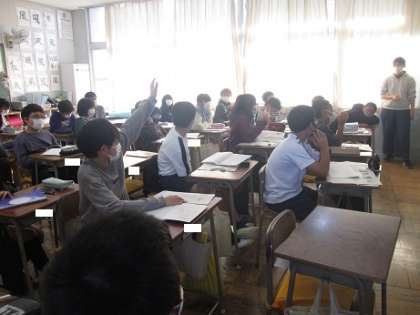 6年生の学習の様子です。国語では説明文について、読み取ったことを意見交流をしました。