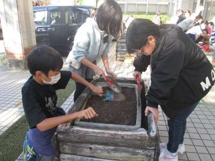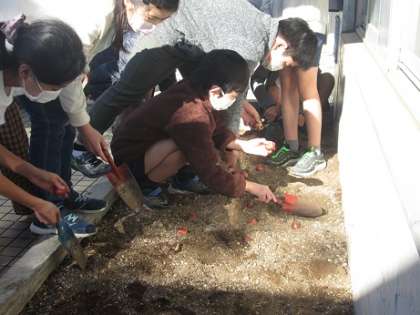 先日、生物環境委員の児童が、チューリップやアネモネの球根を植えました。春の開花が待ち遠しいです。