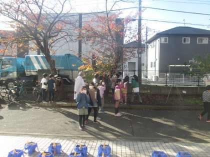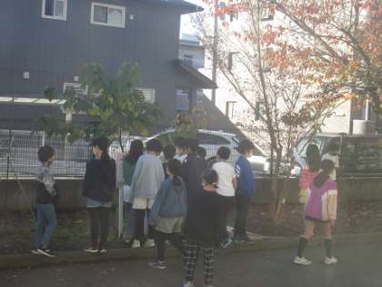 4年生の学習の様子です。理科では「秋の自然」について学習しています。校舎内の秋を見つけ、草木がどうなっているかを確認していました。