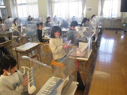 5年生の学習の様子です。音楽では「キリマンジャロ」という曲を全員で合奏しました。息がぴったりと合っていて本当に素晴らしかったです。