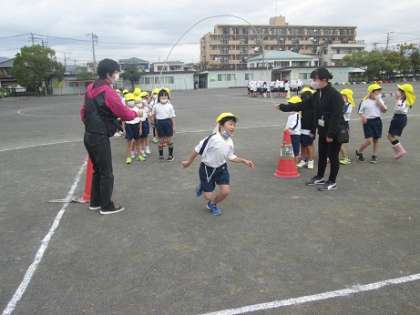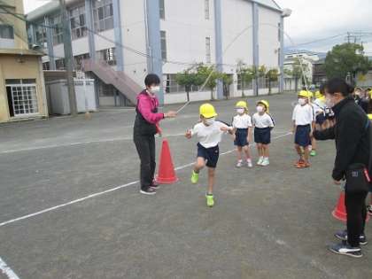 1年生の学習の様子です。体育では長縄にチャレンジしました。みんな上手に跳んでいました。