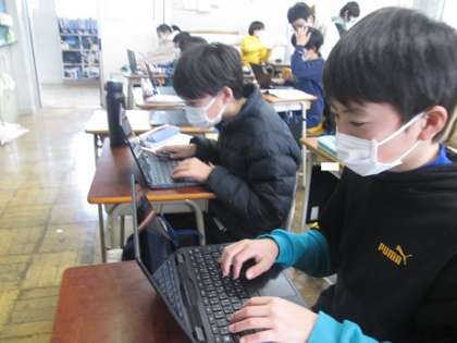 6年生の学習の様子です。総合的な学習において「自分を見つめてみよう」ということをテーマにクロームブックで考えを書き込んでいました。