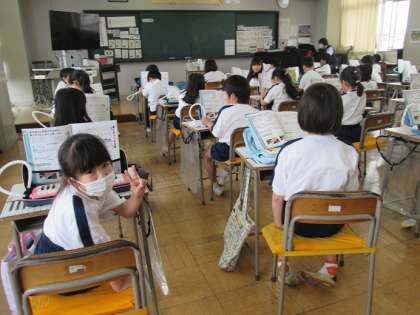 音楽では鍵盤ハーモニカを1人1人ずつ演奏していました。