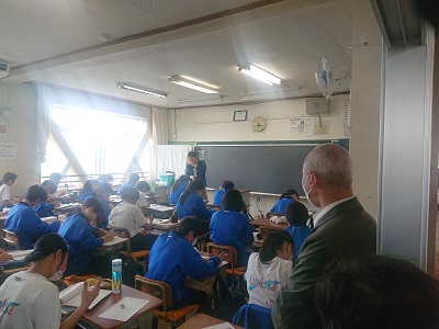 協議会では、最初に中学生の授業の様子を参観したり、金岡三校の校長から学校のグランドデザインについての説明を行ったりしました。