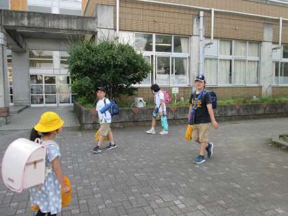 みんな、元気よくあいさつしていきます。かぶっている帽子をぬいで、あいさつしていく子もいます。笑顔で登校が一番です。