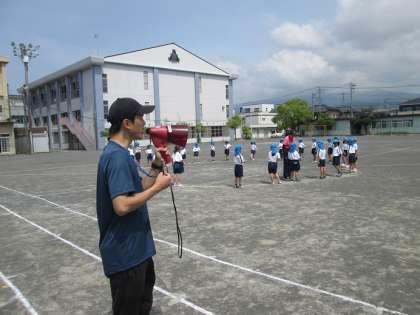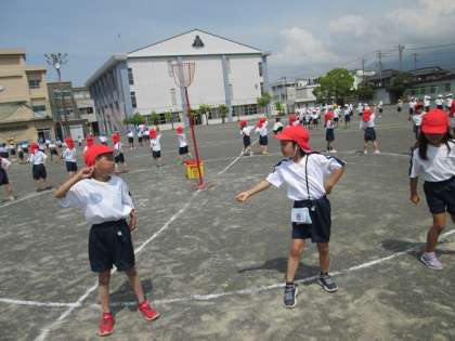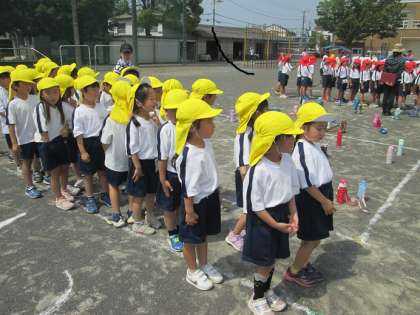 1年生は初めての小学校の運動会に向けてがんばっています。入場やダンス、退場の流れなどを確認していました。暑い中、小さな体をいっぱいに動かしてがんばっています。