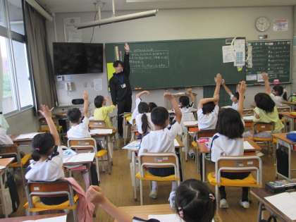 別のクラスでは「ひき算のひっ算」の学習をしていました。積極的に自分の考えを発表しようとしています。手をピンと伸ばしています。