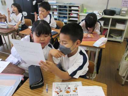 このクラスでは、運動会の個走とダンスの位置を確認して、お家の人へのお知らせに書き込んでいました。一番いいところで応援してもらえるといいですね。