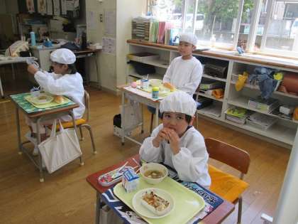 グラタンもスープもおいしかったね。のどにつまらないようによくかんで、食べようね。
