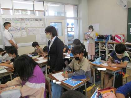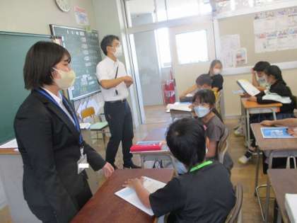 5年生は保健体育で「心の健康」について学習を進めています。今日は、教育実習生と学級担任がティームティーチングで子供たちの学びを支援しました。なお、この授業は教育実習生の研修授業として行い、大学教授も参観されました。