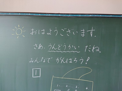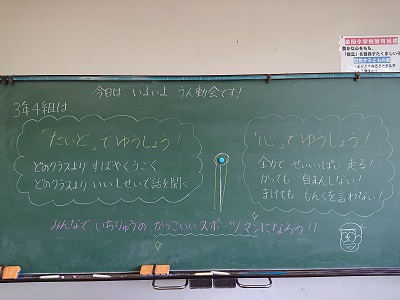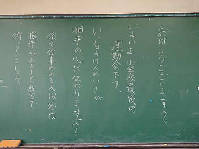 運動会当日、各クラスには学級担任や子どもたちによる黒板メッセージが掲げられていました。
